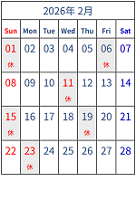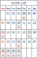 2025/12月〜2026/2月の休診日((12/1更新)